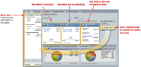 Easier navigation makes it faster to get around and discover the features and tools that work best for you. Clickable tabs let you switch between Quicken's main pages. And a new interactive account bar makes it clear which of your accounts you are working with at any given moment.